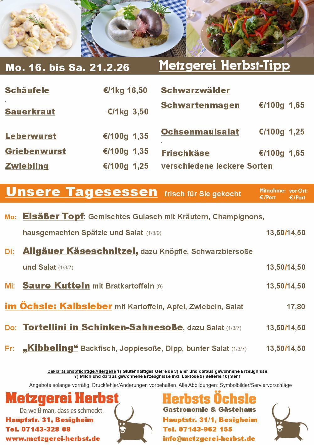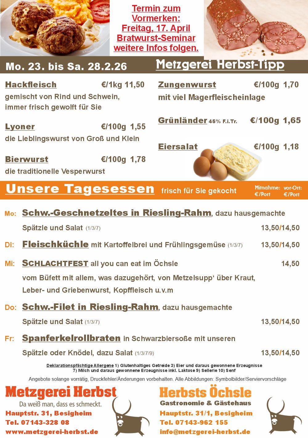 Zu folgenden Zeiten haben wir in der Metzgerei für Sie geöffnet:
